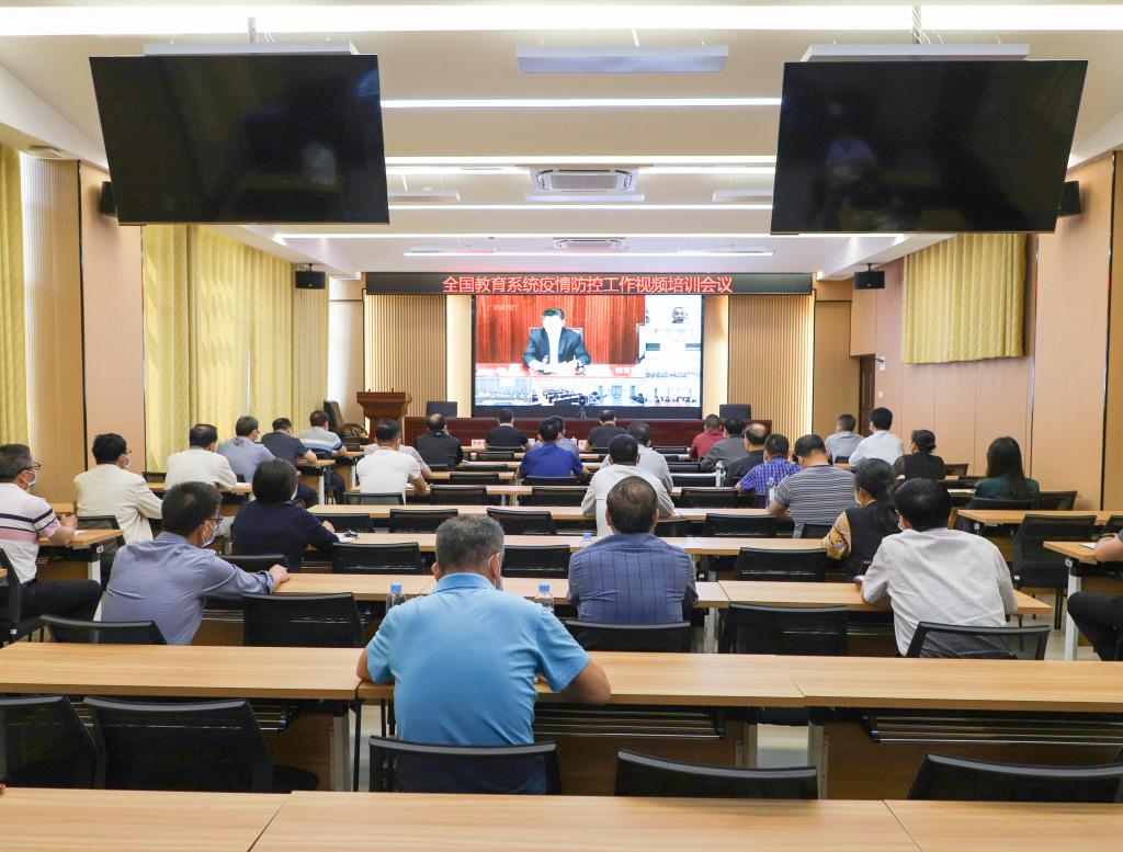 4月14日,教育部举办2022年第2次全国教育系统疫情防控工作视频培训,深入学习贯彻习近平总书记关于新冠肺炎疫情防控重要指示精神,落实党中央、国务院决策部署,培训近日教育部联合国家卫生健康委印发的高等学校、中小学校和托幼机构新冠肺炎疫情防控技术方案(第五版),部署从严从细从实做好当前教育系统疫情防控工作,提高科学精准防控水平。我校在西区格致楼102会议室设立分会场,学校党委常委,副校长韦文广,党委常委,副校长覃拥灵以及各部门、各单位主要领导参加会议。