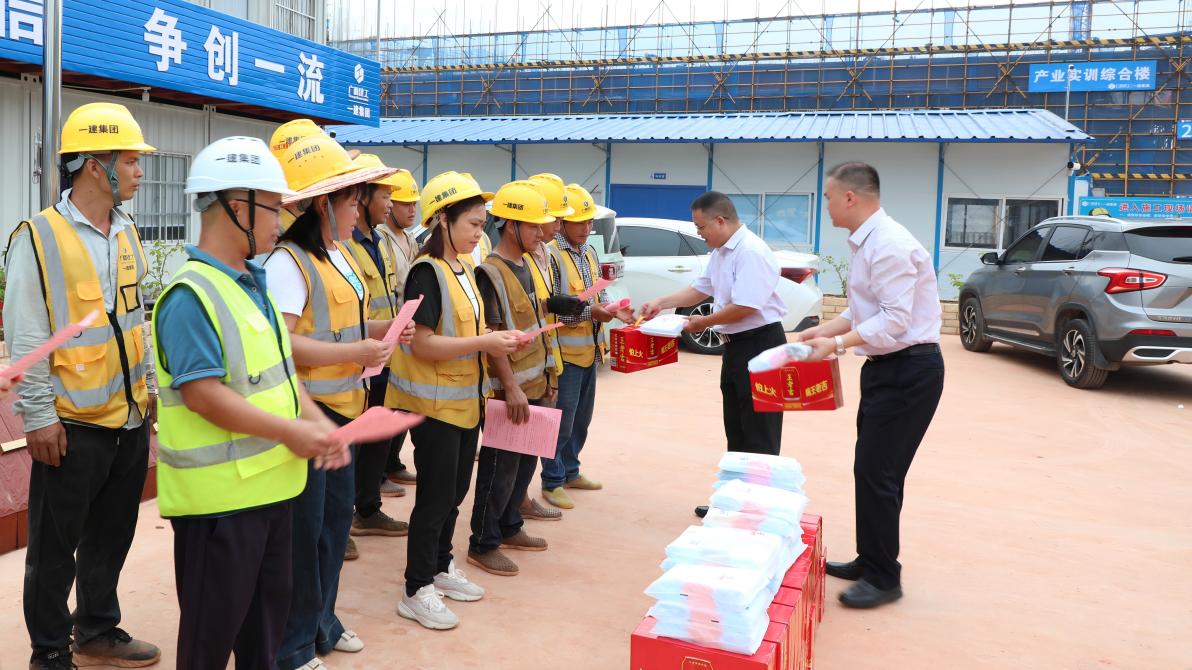 校领导带队首先走访了新校区建设施工现场,向施工队工人代表发放了暑期清凉健康科普宣传单和防暑降温品,并表示学校始终关心暑假奋战在高温一线的职工,向高温天气依然坚守岗位辛勤工作的职工们表示衷心的感谢,叮嘱大家要注意防暑降温,注意劳逸结合,在确保高温作业安全的前提下,保障各项工作高质量推进,实现安全与质量“双保障”。