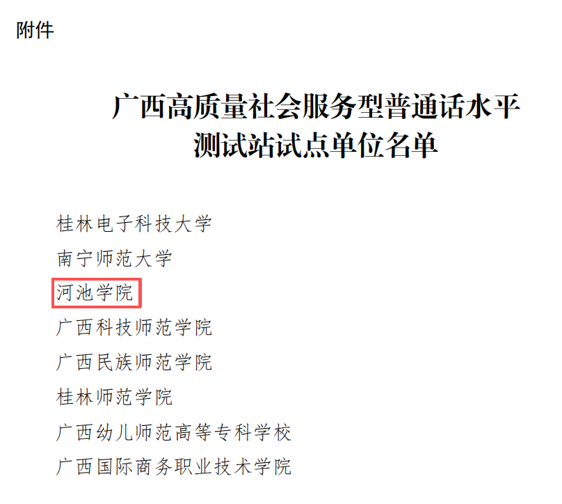 近日,广西教育厅公布首批高质量社会服务型普通话水平测试站试点名单,全区共8所高校入选,我校名列其中。此次获批,是对我校长期以来普通话推广与测试工作的充分肯定。