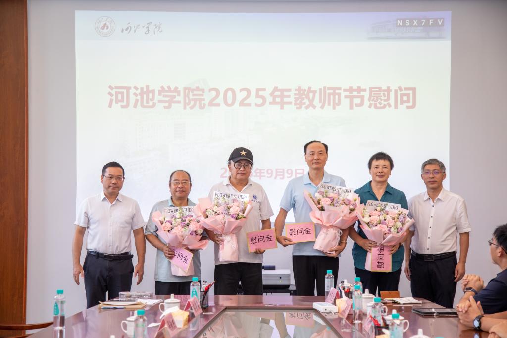 会上,甘毅、马少健代表学校向与会教师代表送上鲜花与慰问金,一束束绽放的鲜花承载着敬意,一份份暖心的关怀传递着温情。