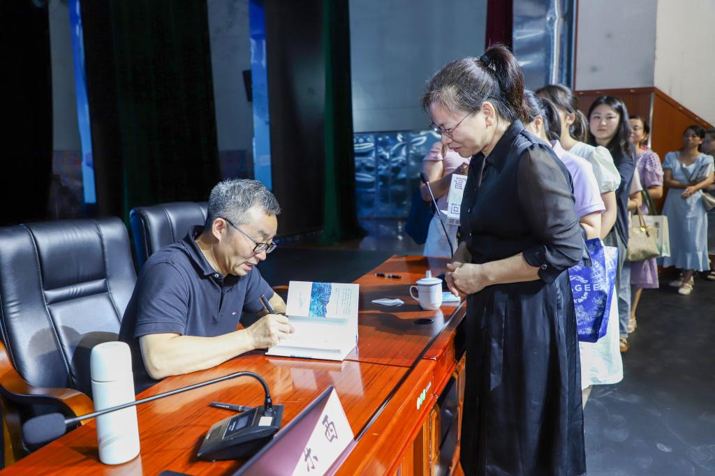 在互动环节,现场师生踊跃举手,争相提问。东西老师耐心细致地一一解答,并现场为师生签书。(作者:吴海娇 拍摄:张燕婷、韦福璐 校对:罗冬雨 审核:杨玉珠)