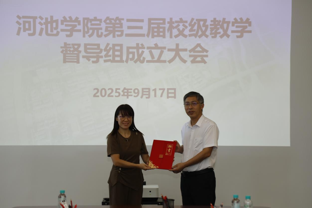 校长马少健为第三届校级教学督导组组长谭静副教授颁发聘书