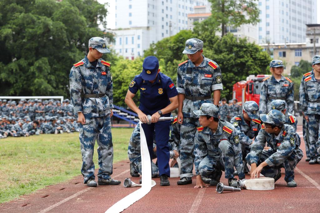 9月22日,我校在西区田径场举行2025级新生军事训练应急演练现场会。河池市宜州区消防大队龙江消防救援站政治指导员薛向辉作消防知识宣讲。学校党委人民武装部,各二级学院相关负责人及参加军训的全体新生参加活动。