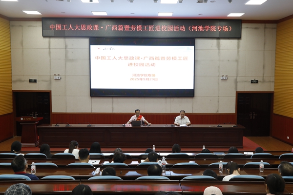 9月29日,由河池市总工会主办、河池学院协办的“中国工人大思政课·广西篇暨劳模工匠进校园”活动在我校举行。活动特邀广西先进工作者、河池市融媒体中心副主任田敏作主题分享,200余名师生参加活动。