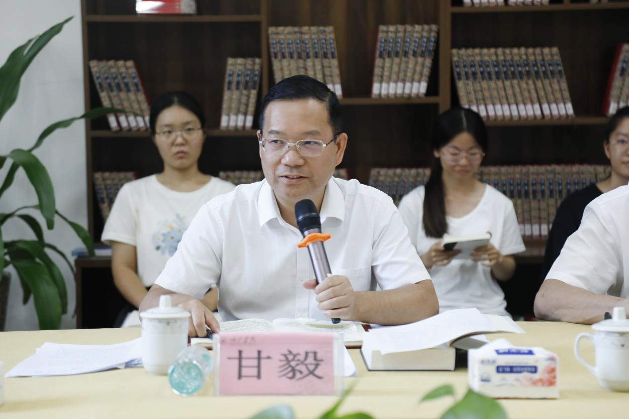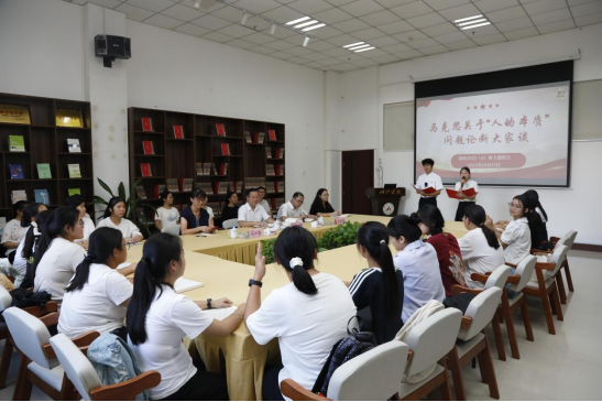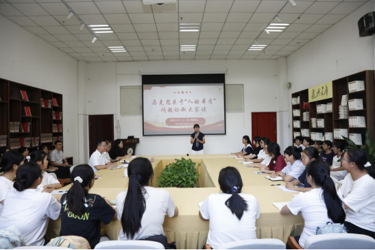 “中国问题研究专家罗斯·特里尔的名著《毛泽东传》中说,中国的革命事业是从图书馆开始的。”甘毅书记饶有风趣地说道,“今天选择图书馆清风读书室面对面地交流座谈,很有意义。”甘毅书记追忆起自己的求学时光,认为大学是一生事业的开端,而进入大学首先从对“人”的认知开始。他告诫同学们,我们对人的认知包含对人的本质的认知、对河池学院的认知和对河池学院人的认知,要从正确的认知中安排学业、布局人生。他向同学们提出了三点期许:一是马克思主义学院的学生要全面、立体、深刻地认知一个可爱可敬、有血有肉的马克思形象。马克思同我们每一个人一样也都是常人,有自己的求学观、择友观、择业观、世界观、人生观、价值观,我们要从马克思对生活的态度、人生的追求和改造世界的情怀中,真切感悟马克思的思想观念、格局境界、理想信念,促进自身与马克思主义思想相通、情感共鸣,从而更好理解、认同和传播马克思主义理论。二是马克思主义学院的学生,特别是思想政治教育专业的学生,要将专业学习和博览群书结合起来,全力学好思想政治教育专业。作为大学生,尤其要培养专业精神,始终坚持以问题为导向、带着问题把专业课程学专学细、学深学透;在专业之外,带着乐趣博览群书,触类旁通,独立思考,养成通变思维和爱好学术的学习旨趣;在实践中进一步检验学习成果,获取真知。三是马克思主义学院的学生要洞明“人的本质”,树立正确的思想,力争在强国建设、民族复兴伟业中干好事业、过好人生。民族复兴伟业落实在一件件具体的实事中,凡事要看清本质、抓住关键、切中肯綮、直奔实质。关键还要付出实际行动,希望同学们带着对河池学院的热爱和责任,将“纪律严明、氛围和谐、高质高效、自强卓越”的校园管理理念赋能于身,在大学四年的生动实践中为一生打下基础,母校要当好大家的靠山、大家要成为母校的骄傲,每个人既要活成自己想要的样子,也要活成国家和人民需要的样子。