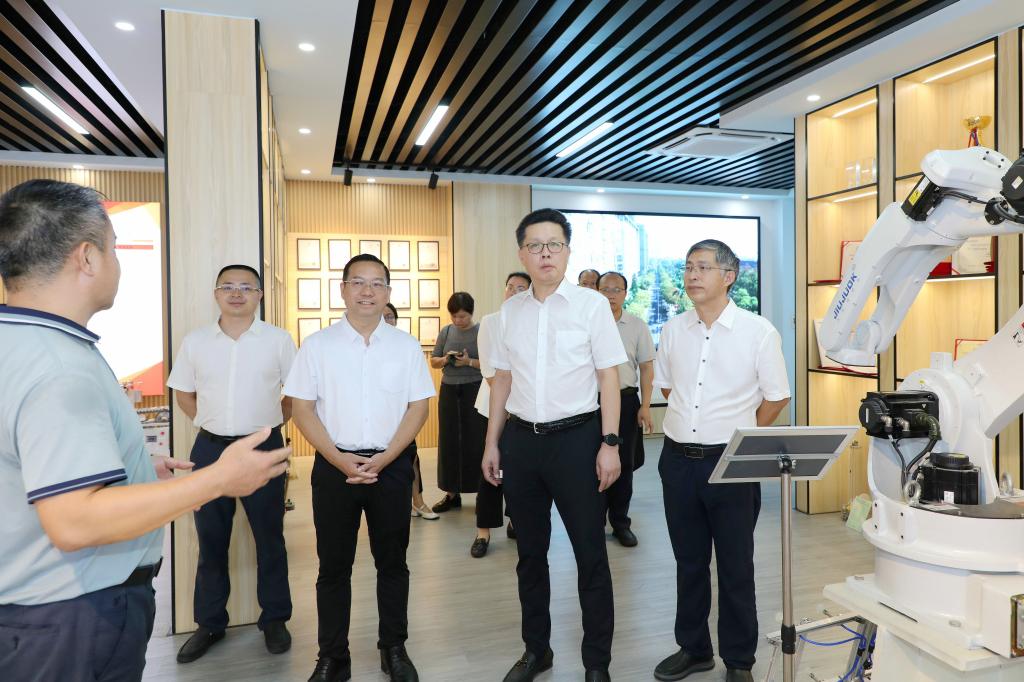 张鹏一行在校企成果展厅考察。