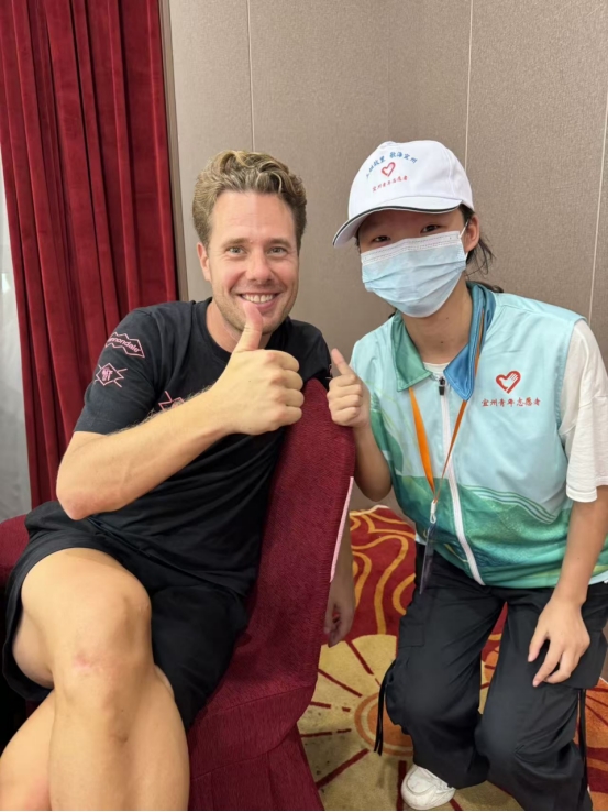 作为本次赛事组织接待组长,能与来自世界各地的选手交流,我内心充满激动。很高兴能通过专业翻译和点滴服务为他们提供便利。在与各国朋友的接触中,我也被他们的友善与热情深深打动,也被选手们在比赛中全力以赴的身影、挥洒的汗水深深触动。更让我自豪的是,能顺利将宜州的果酱烧烤、酸嘢、刘三姐的故事、竹竿舞等特色文化介绍给他们,并得到他们的点赞。这次接待不仅是为赛事保驾护航,更是一次生动而深刻的中外友好交流,我深切体会到“文化交流无边界,真诚连接你我”。