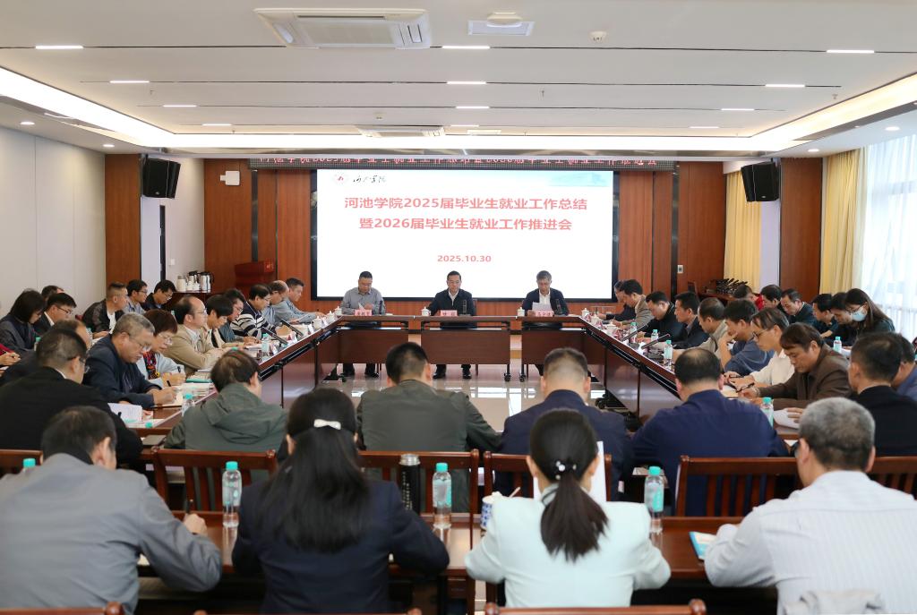 就做好2026届毕业生就业工作,甘毅强调,一要提高政治站位,扛牢“一把手”责任,把就业工作摆在学校事业发展的更突出位置。要坚持“以学生为中心”的办学理念,坚决落实就业“一把手”工程,做到亲自谋划、亲自部署、亲自督办,全面调动就业指导老师、专任教师、辅导员等各方力量深度参与就业,形成全校“人人抓就业”的工作格局。二要精准研判2026届毕业生就业形势,突出错位竞争、多元化就业新路径,推动毕业生高质量充分就业。通过深化校企校地协同,强化政策性岗位考前培训,引导毕业生转变就业观念,落实“人盯人”帮扶机制,多措并举拓展就业渠道。三要聚焦能力提升,实施“滴灌式”培养,不断增强毕业生就业“硬实力”。各学院要自觉树立人才培养的“低进高出”意识,从学科专业设置、人才培养方案、课堂教学改革、实践实训能力提升等环节中落实“低进高出”具体措施。要突出分类培训指导,通过从“漫灌”到“滴灌”的转变,让毕业生不仅“能就业”,更能“好就业”“就好业”。四要压实工作责任,凝聚全校合力,以“暖如春”的就业指导护航毕业生就业。各部门要加强协同配合,关心毕业生就业工作,营造“人人关心就业、人人支持就业、人人开展就业”的工作氛围。新形势下要在就业市场精准打造和营销好“河池学院”总体品牌和“河院毕业生”个体品牌,提升我校毕业生的市场契合度、欢迎度、去向落实率和就业质量。