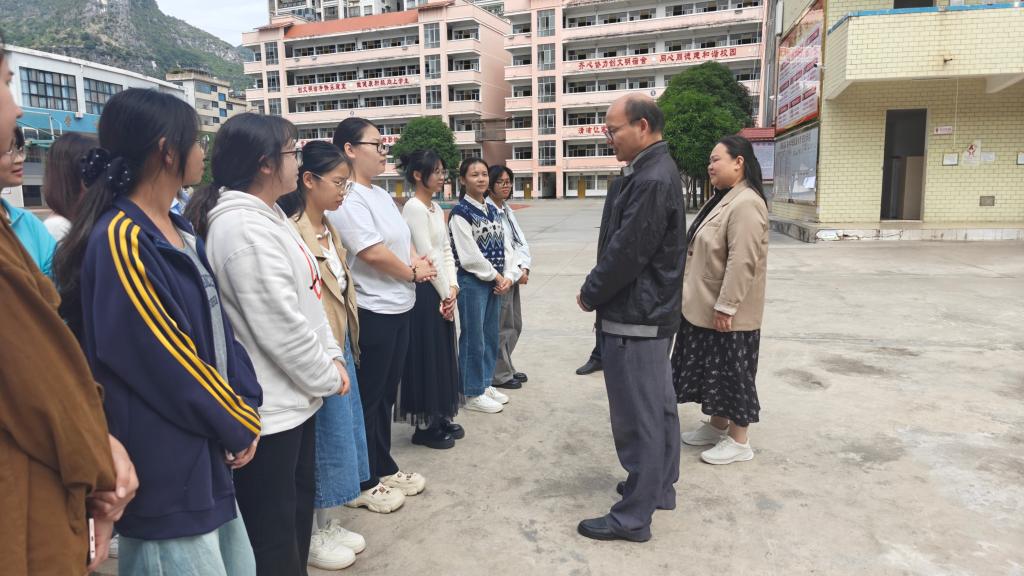 考察组先后深入都安瑶族自治县高岭中学、民族实验中学、瑶族中学、安阳中学、第二初级中学等5所实习基地学校,通过“座谈会+实地走访“相结合的形式,全面了解实习生教学实践情况,倾听实习生在教学设计、师生互动中的心得与困惑。各实习学校校长均表示,河池学院实习生展现出扎实的专业基础和积极的工作态度,“备课认真细致,课堂调控能力强,能快速适应中学教学节奏,为学校注入新活力”,部分实习生已能独立承担班主任工作,获得师生一致好评。