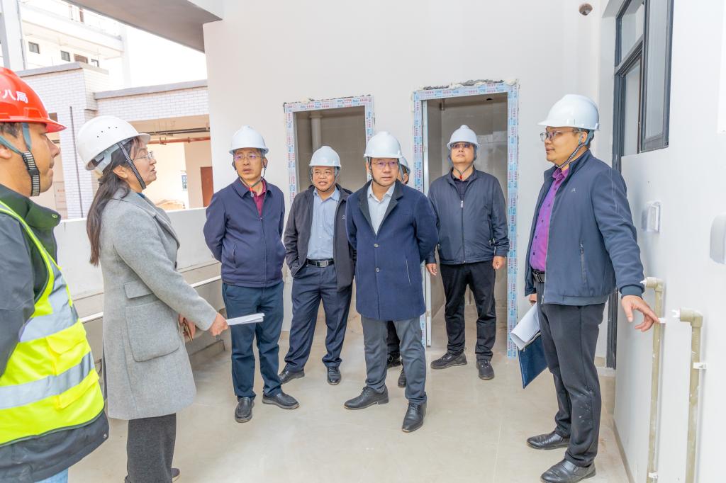 12月3日,学校党委书记甘毅、校长马少健等校领导率相关部门负责人深入新校区施工现场调研,实地了解新校区项目建设进展情况,现场协调解决项目推进过程中的难点堵点问题。