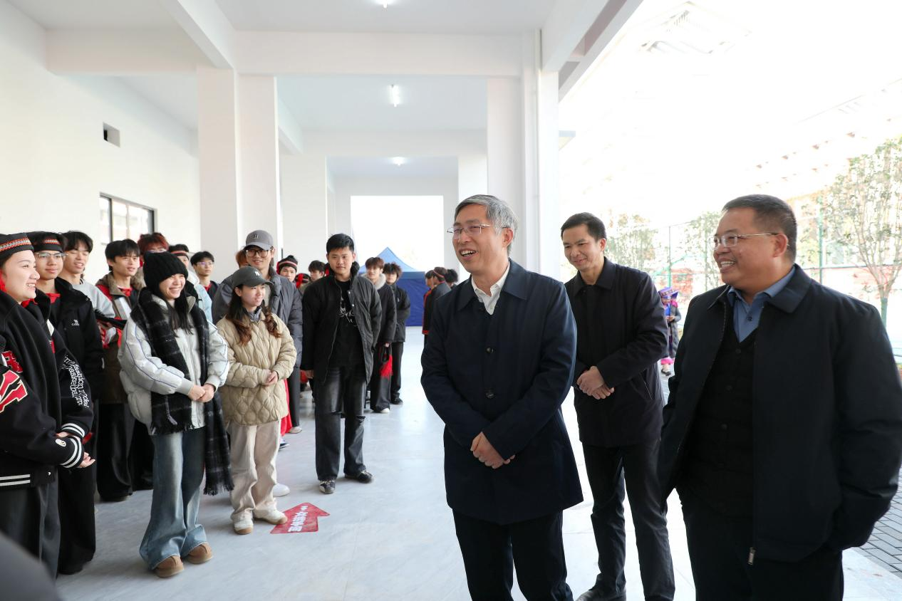 12月14日,学校校长马少健赴都安瑶族自治县,看望慰问我校参与本次庆祝大会文艺展演的师生团队,代表学校向参演师生致以诚挚问候,为大家的最终冲刺加油鼓劲。马少健表示,我校师生团队始终精神饱满、状态昂扬,以专业的素养、整齐的动作、饱满的情感完成表演,展现了我校师生过硬的专业能力与良好的精神风貌。希望全体参演师生继续发扬不怕吃苦、精益求精的精神,克服最后阶段的各种困难,以最佳的精神状态、最精湛的表演技艺登上舞台,全力展现河池学院最美、最佳的形象,为学校增光添彩,也为自己的人生增添浓墨重彩的一笔。