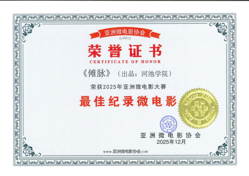 近日,2025 年亚洲微电影大赛获奖名单揭晓,由我校出品的纪录片《傩脉》凭借深厚的文化内涵与精湛的艺术表达,荣获“最佳纪录微电影”奖,该片导演韦海燕同步荣获“最佳导演”奖。