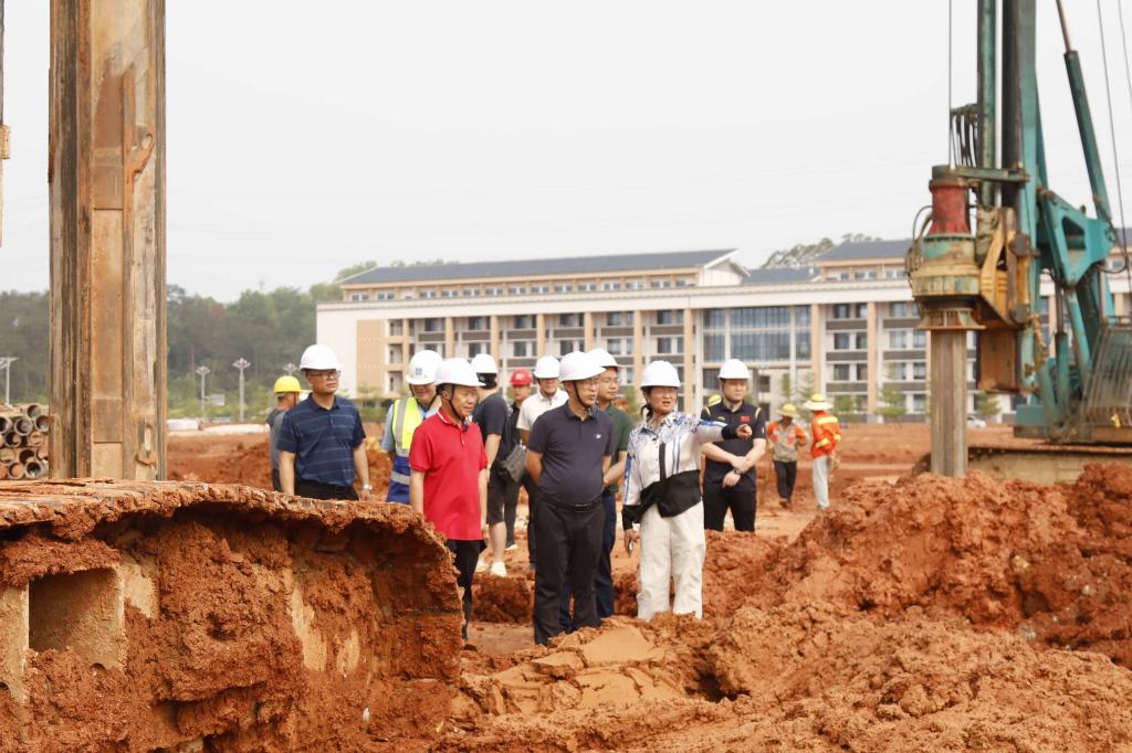 马少健强调,新校区项目所在地属于典型的喀斯特地貌,场地地质条件复杂,面临桩基施工溶洞处理难度大等困难问题。同时,新校区项目是现状供地,场域内石山、沟壑繁多,周边配套建设滞后,相较常规项目而言,场地平整、排污排水等前期施工成本巨大,项目具有一定的特殊性和复杂性。各部门要从讲政治的高度,树立大局意识,强化责任担当,加强协调联动,强化工程技术人员现场见证监督,针对具体技术问题采取一线工作法,通过现场集体会商研判提升决策的时效性和针对性,要本着实事求是、厉行节约的原则,科学有效控制工程成本,推动复杂问题规范高效解决,打造经得起历史检验的优质工程、廉洁工程。(作者:韦文韬 拍摄:韦文韬 校对:吴海娇 审核:唐吉深)