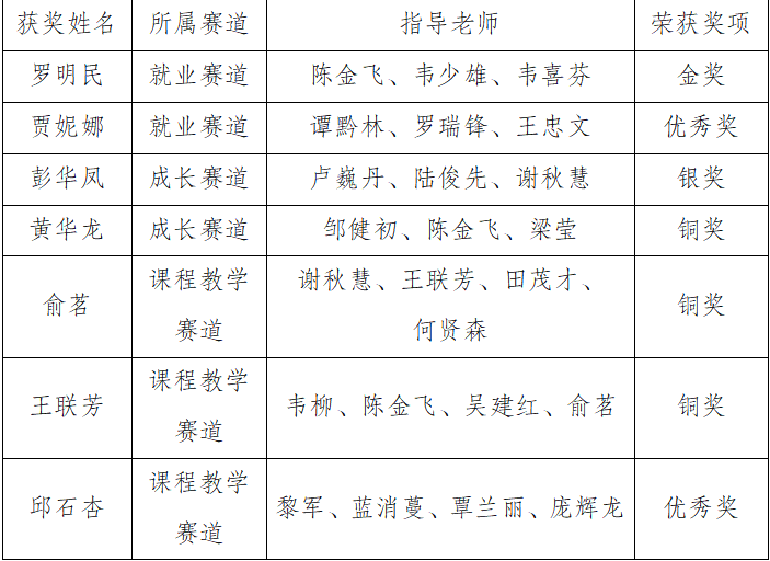 近日,自治区教育厅公布了第三届全国大学生职业规划大赛广西赛区获奖名单,我校师生表现优异,共斩获金奖1项、银奖1项、铜奖3项、优秀奖2项,具体获奖情况如下: