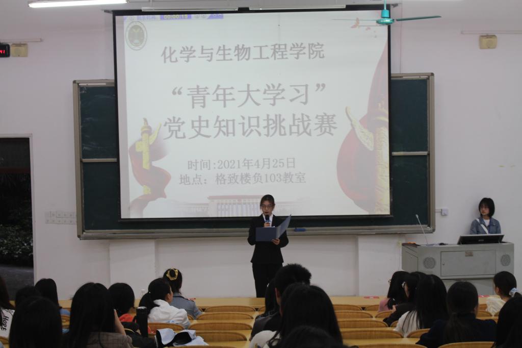 我院于4月25日在格致楼-103教室举办了化生学院“学党史、强信念、跟党走”2021年广西青年大学习党史知识挑战赛。