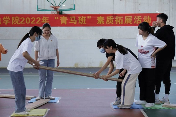 为增强我校学生身体、心理素质,培养同学们团结互助、勇于挑战、敢于拼搏的优秀品质,引导和激励青年争做新时代的合格大学生,我校青年马克思主义者培训班于4月10日下午在东区校友球馆开展“青马班”素质拓展活动。