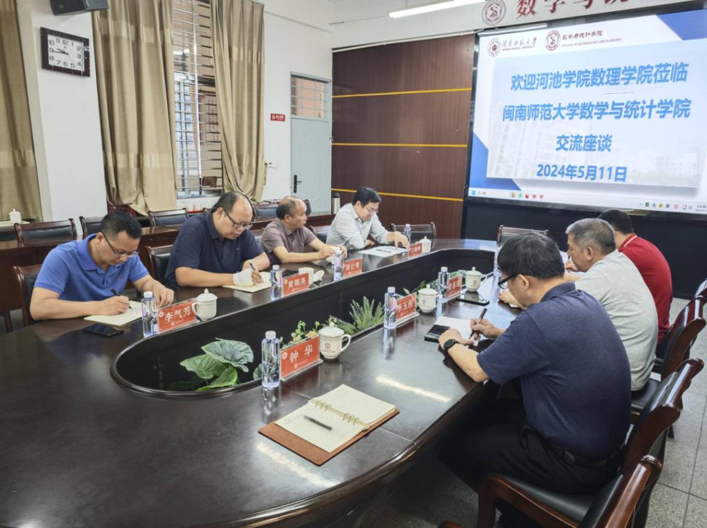 学院一行得到了闽南师范大学数学与统计学院的热情接待,双方开展了交流座谈会。闽南师范大学数学与统计学院院长黄韩亮教授、副院长周仕荣教授、数据科学与计算教研室主任王晓峰教授、概率统计教研室主任李气芳教授参加了座谈会。双方介绍了各自学院的基本办学情况,并围绕数据计算及应用专业申报与建设、师范专业认证相关问题、统计专业的实习与就业以及学院学科建设等方面进行了深入交流。