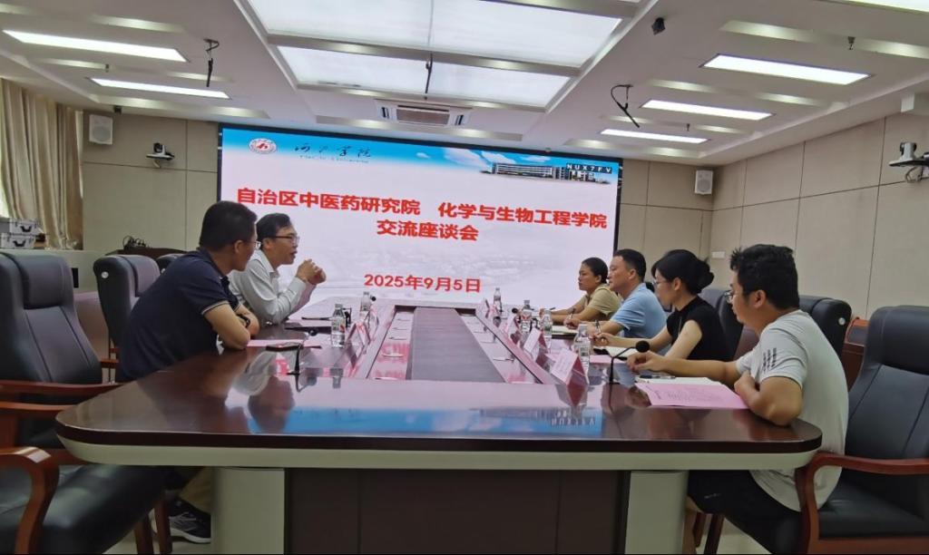 9月5日,自治区中医药研究院副院长黄云峰,助理研究员徐传贵一行到我校化学与生物工程学院开展学术交流。座谈会在格致楼907会议室举行,化学与生物工程学院院长李晓东教授、生物工程与制药工程教研室教师代表参会。