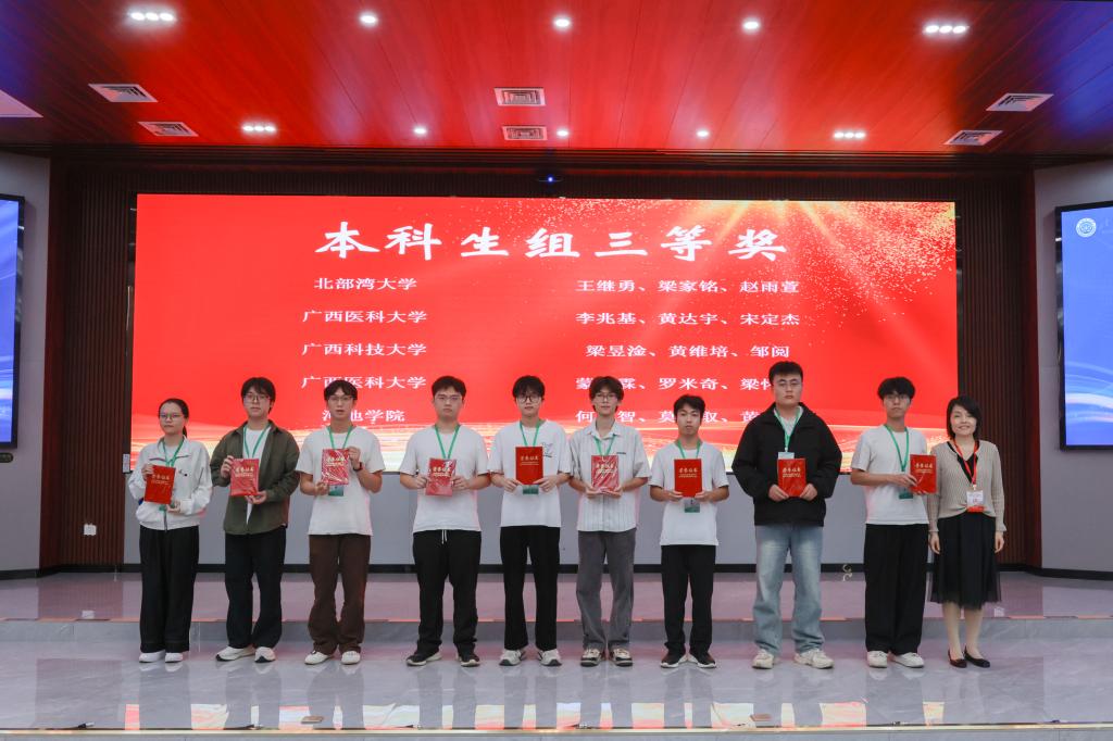 11月9日,第六届广西高校大学生信息素养挑战赛暨2025年大学生“AI+信息素养”大赛广西赛区决赛在北部湾大学落下帷幕。由我校人工智能与制造学院何深智、莫守取、黄品韬三位同学组成的“劳务队”表现出色,荣获本科组团体三等奖,指导老师唐凤仙、彭年冬获评“优秀指导老师”。