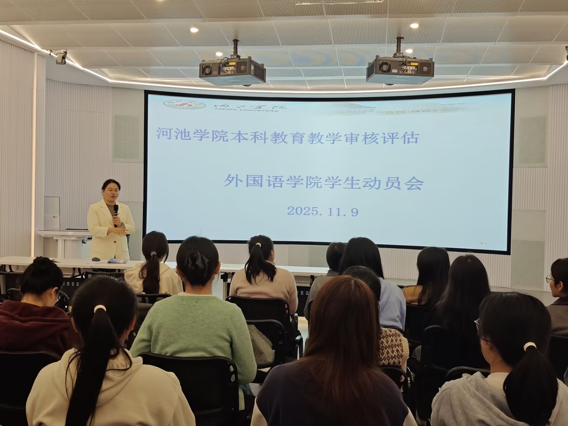 为扎实推进本科教育教学审核评估工作,增强学生的参与感和责任感,11月9日,外国语学院(国际教育学院)在致远楼多功能厅召开本科教育教学审核评估学生动员会。学院党委副书记周茜、全体辅导员、各班班长及团支书参加动员会。