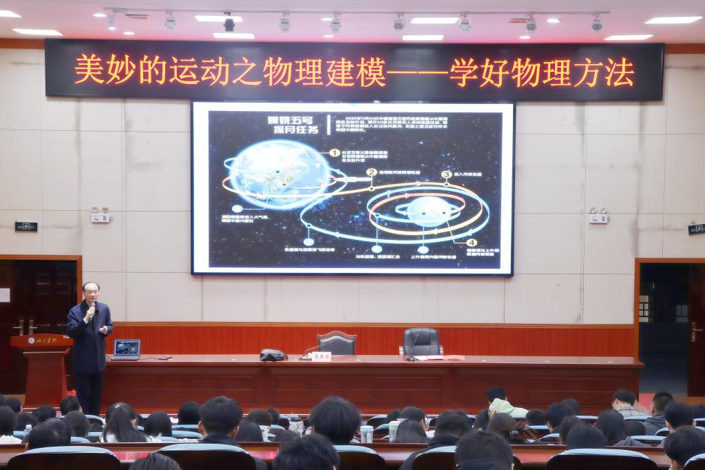 11月28日晚,数理学院在弘毅楼1-205 报告厅举办专题讲座,银龄教师高英俊教授以“美妙的运动之物理建模——学好物理方法”为题主讲,物理学专业师生代表到场聆听。
