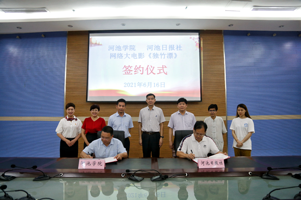 为加强学校与地方媒体的合作力度,展现我校改革发展新面貌和特色办学成果,营造热烈庆祝建党一百周年和建校七十周年的浓厚氛围,激发师生昂扬向上的干事创业劲头。6月16日下午,我校与河池日报社在图书馆122会议室举行网络大电影《独竹漂》签约仪式。校党委书记韦安光、党委副书记韦伟松,党委常委、宣传部部长唐毓首,河池日报社社长杨合,以及双方有关负责人出席仪式。仪式上,唐毓首与杨合签订合作协议。双方就《独竹漂》制...【查看详情】