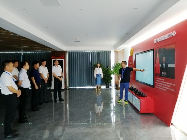韦安光一行参观了华为公司自助访客系统、智能化办公控制系统、电子化会议室,并在体验展厅体验了5G全息通信技术,感受数字化、智能化、人性化及科技感的连接与体验。在华讯智能科技有限公司,韦安光一行参观了数字化党建服务中心,了解新媒体、新技术与党建工作的融合及拓宽党员学习教育的途径。