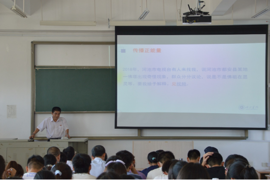 由河池学院党委宣传部主办、大数据与计算机学院承办的第五十二期“道德讲堂”于9月29日下午在弘毅楼2-507如期举行。本期道德讲堂的主题为“党史学习,德润我心”,由大数据与计算机学院党委书记彭金松主讲,师生党员及入党积极分子到场聆听。