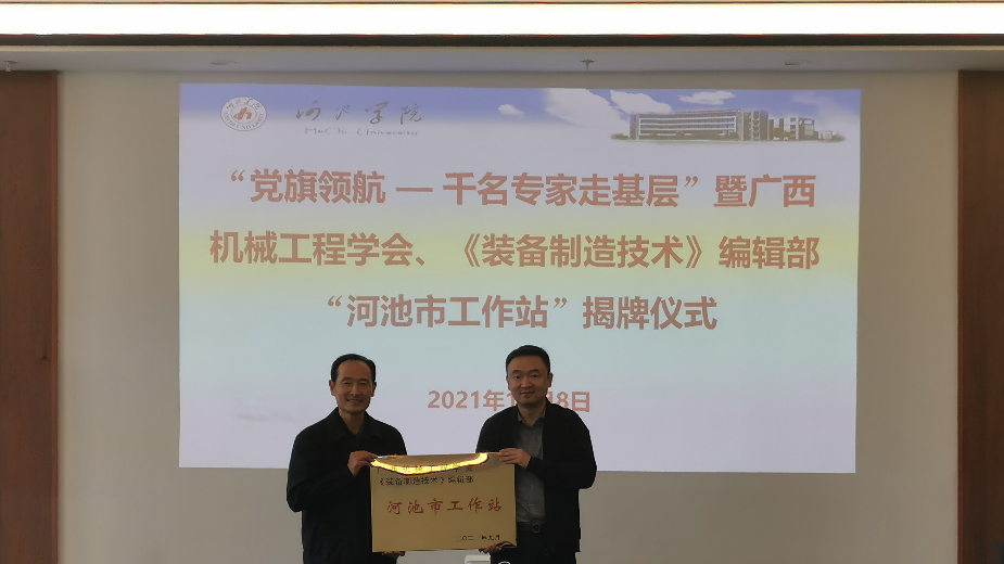 11月8日,由广西机械工程学会理事长李尚平教授带领的广西机械工程学会专家、企业代表到我校开展“党旗领航—千名专家走基层”暨广西机械工程学会、《装备制造技术》编辑部“河池市工作站”揭牌仪式活动。校长苗剑出席活动,人工智能与制造学院有关领导老师参加活动。