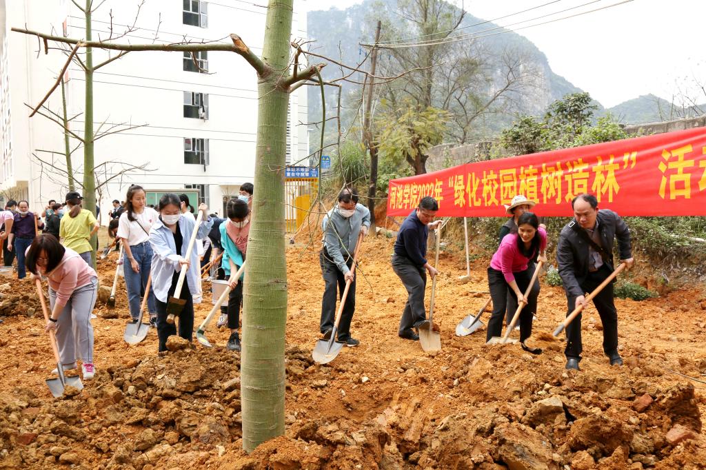 为进一步美化校园环境,争创绿色文明校园,3月16日下午,我校在东区10号公寓楼东面和金盆捞月东面开展义务植树活动。学校党委书记韦安光、校长苗剑等校领导以及师生代表参加植树活动。