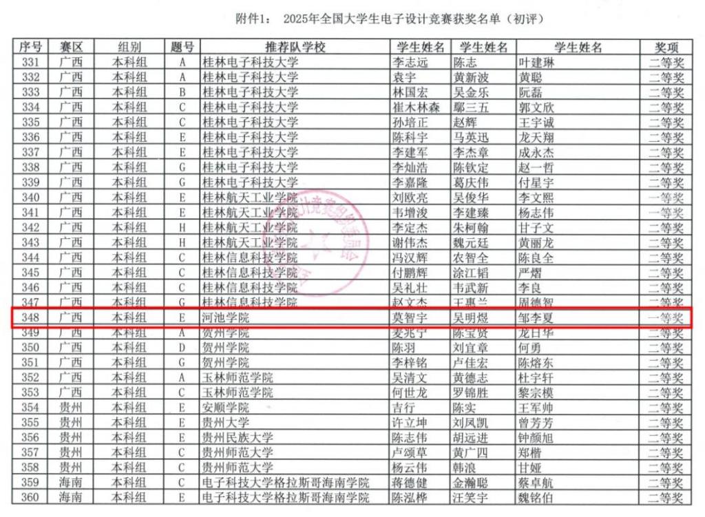 8月21日2025TI杯全国大学生电子设计竞赛在大连理工大学进行半封闭式作品设计比赛,由我校由人工智能与制造学院、大数据与计算机学院组织的多个参赛队,经过前期的强化集训以及四天三夜的艰苦竞赛角逐,最终由吴明煜、邹李夏、莫智宇参赛队获得全国一等奖,打破了该项竞赛我校历史纪录。