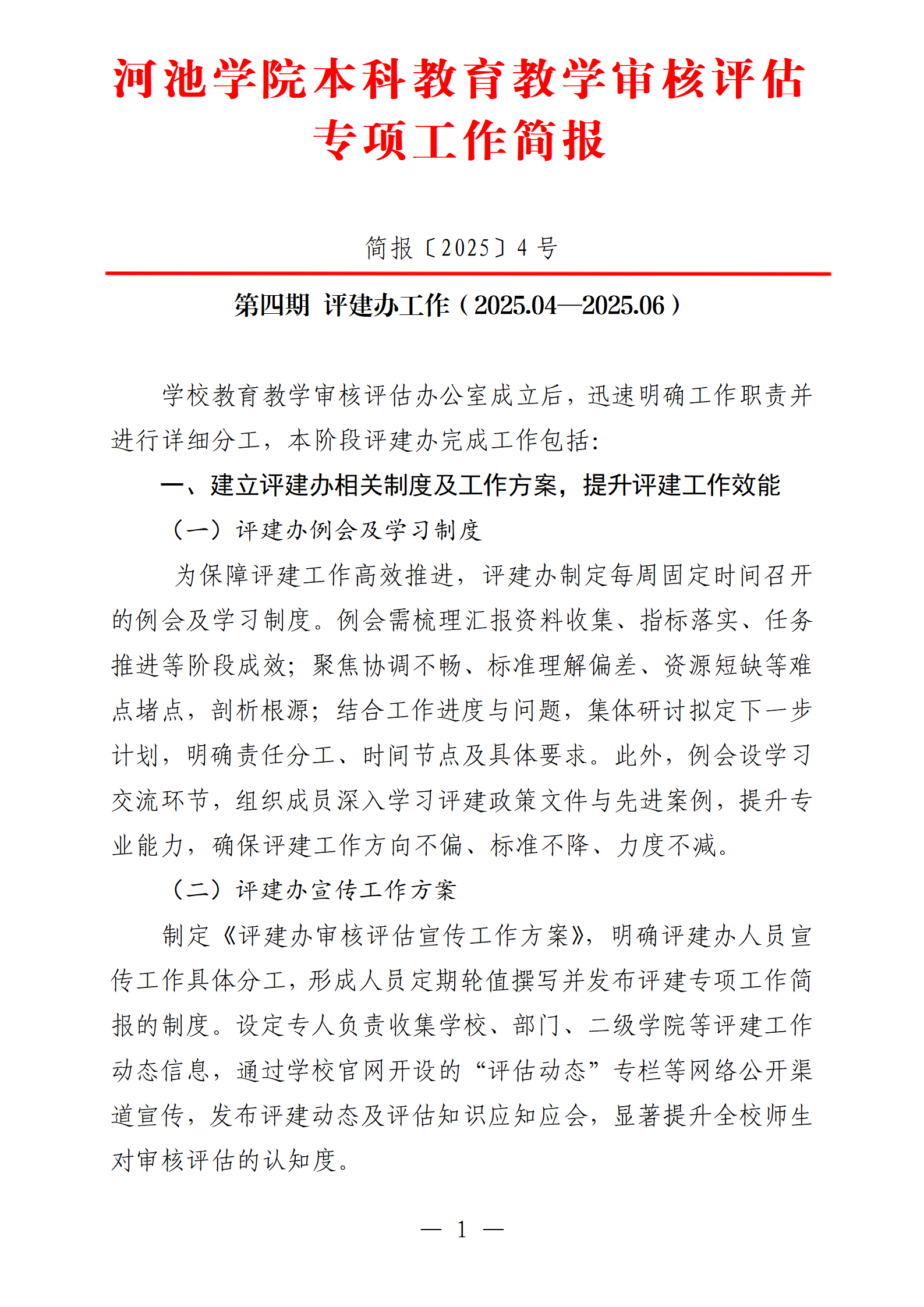 河池学院本科教育教学审核评估专项工作简报第四期