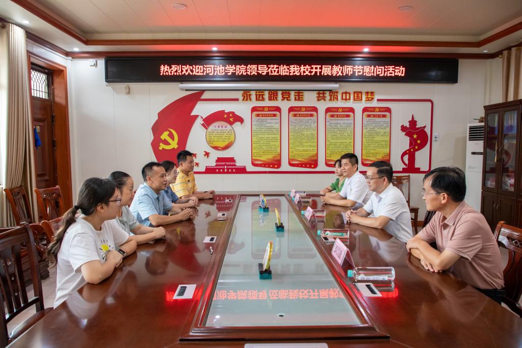 校领导代表学校向宜州区各学校教职工致以节日的诚挚问候和美好祝愿,感谢各学校长期以来对我校学生见习实习、毕业生就业及教职工子女上学等工作的大力支持和帮助。同时,希望各学校与我校能充分发挥各自优势,一如既往在教育教学协同、教师专业成长、资源互补共享、人才贯通培养等领域深化沟通与协作,共同探索教育发展新路径,持续为双方教育事业高质量发展注入新动能。(作者:吴海娇 拍摄:宣传部 校对:肖佳 审核:韦海燕)