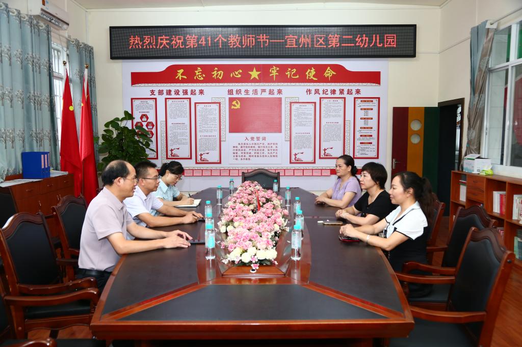党委常委、副校长苏安在宜州区第二幼儿园开展教师节慰问活动。
