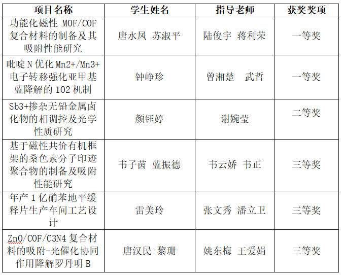 近日,第二十六届广西高校大学生化学化工类学术创新成果大赛获奖名单公布,我校化学与生物工程学院参赛团队表现出色,共斩获一等奖2项、二等奖1项、三等奖3项。其中,我校获“优秀组织奖”。