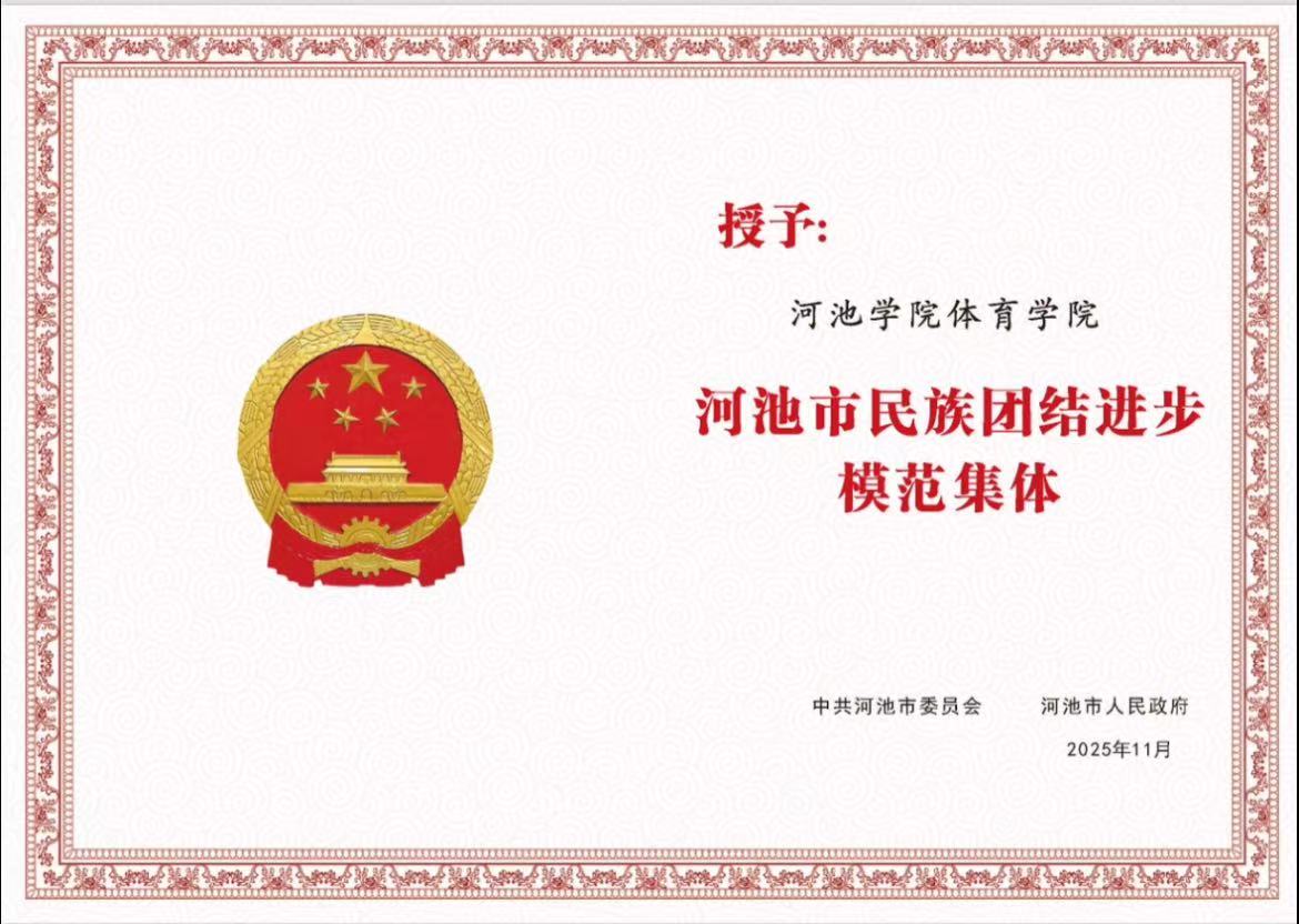近日,从中共河池市委员会、河池市人民政府印发的《关于表彰河池市民族团结进步模范集体和模范个人的决定》中获悉,我校体育学院凭借在民族文化传承、校地协同共建、民族团结教育等方面的突出贡献,成功获评“河池市民族团结进步模范集体”。