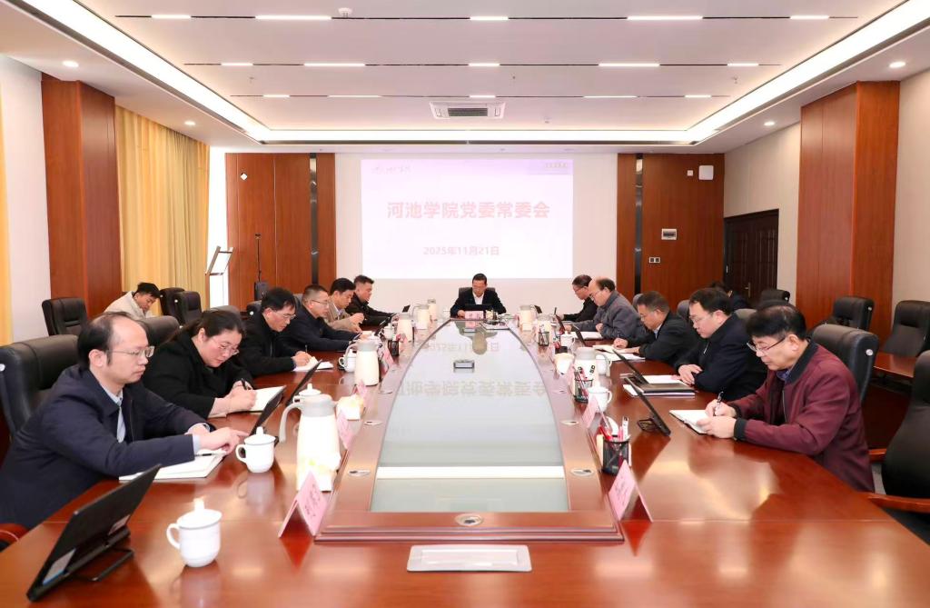 会议强调,要深入学习宣传贯彻党的二十届四中全会精神,统筹推进全校师生全覆盖学习,推动党的创新理论入脑入心、落地生根。要深入学习贯彻习近平总书记在纪念胡耀邦同志诞辰110周年座谈会上的重要讲话精神,传承好先辈精神,更加紧密地团结在以习近平同志为核心的党中央周围,凝心聚力,奋发进取,奋力谱写河池学院赶超式高质量发展新篇章。要深入贯彻落实习近平总书记在听取海南自贸港建设工作汇报时的重要讲话精神,锚定需求优化学科,深化产学研协同创新,强化思想与人才引领,以教育赋能地方开放发展,践行立德树人使命。要深入贯彻落实习近平总书记在广东考察时的重要讲话精神,学习好、传承好、发扬好“敢闯敢试”“敢为人先”这两种精神,高质高效,自强卓越,共同建设“最好的河院”。要深入学习贯彻习近平总书记给青年汉学家的复信精神,在教育实践中推动中华优秀传统文化传承创新,推进全国文明校园建设、大思政课品牌建设和校园文化一体化建设,努力办好有底蕴、有文化、有风骨的大学。要深入学习贯彻习近平总书记对全面依法治国工作作出的重要指示精神,筑牢育人法治根基,完善依法治校机制,深化法治社会服务,推动法治理念融入校园建设各环节并向社会延伸,合力开创法治校园建设新局面。