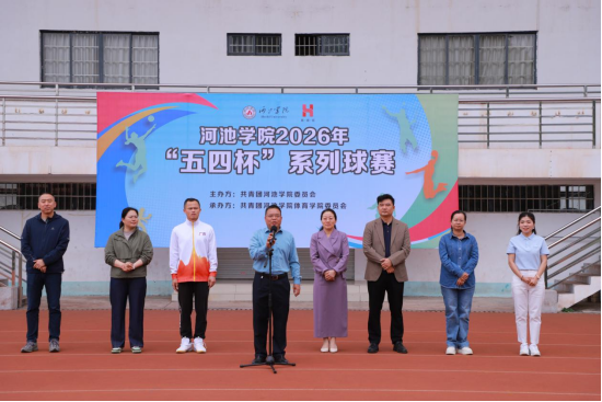 4月22日,由共青团河池学院委员会主办,共青团体育学院委员会承办的2026年“五四杯”系列球赛开幕式在我校东区田径场举行。学校副校长唐毓首出席开幕式。校团委全体成员、各二级学院党委副书记及运动员代表、全体裁判员参加开幕式。