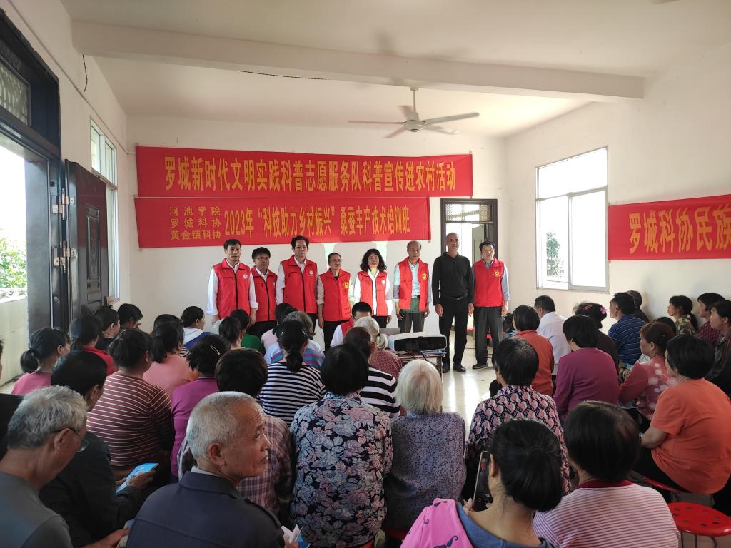 4月15日,我校化学与生物工程学院、广西蚕桑生态学与智能化技术应用重点实验室的教授博士及广西科技特派员带领河池学院第四届时宜蚕桑现代科技实验班的学员组成蚕桑产业科技服务团,联合罗城中学、罗城科学技术协会等单位赴罗城仫佬族自治县黄金镇开展科技服务和科普活动,为广大蚕农现场培训标准化桑园建设、种桑养蚕现代新技术应用、病虫害综合防治技术等,助力蚕农增收,促进地方蚕桑产业高质量发展。