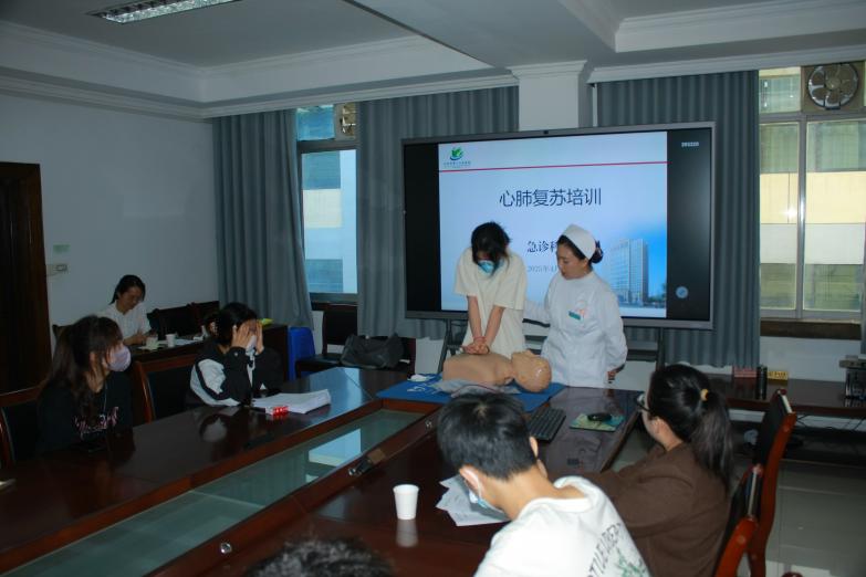 培训分为讲解基本志愿服务内容、护士长进行心肺复苏技能讲解、志愿者进行心肺复苏练习、负责人讲解基本服务流程等四项议程。