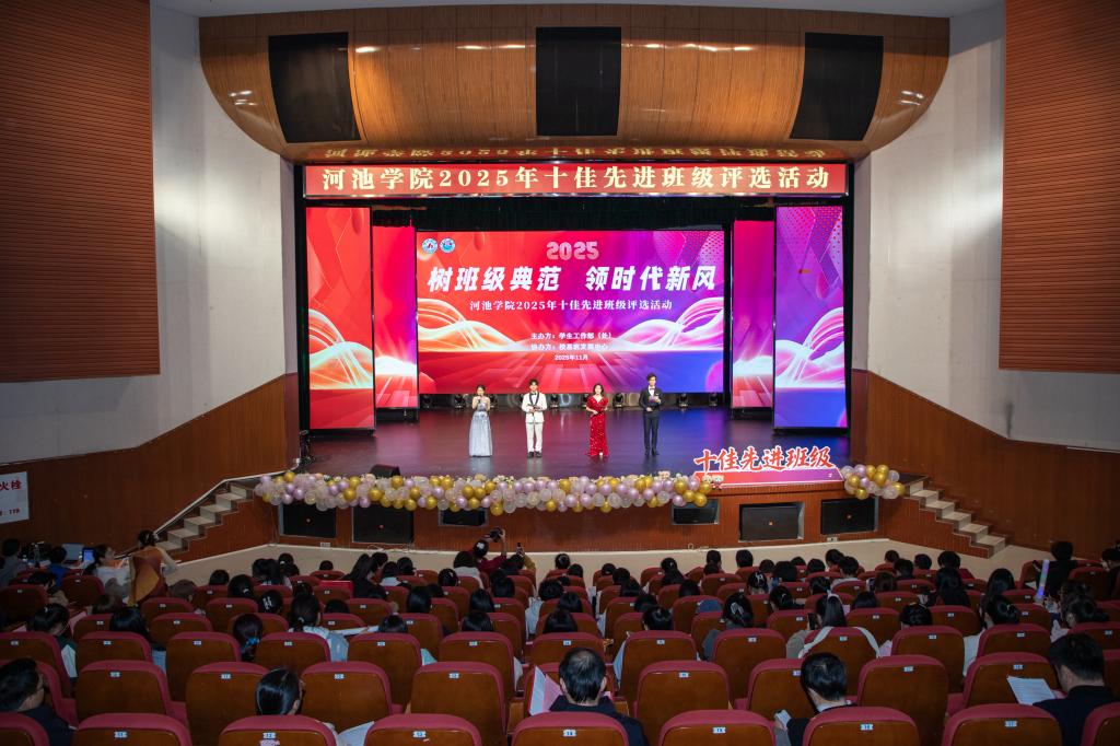 为充分发挥优秀班集体的示范引领作用,增强学生集体荣誉感与凝聚力,强化班风学风建设。11月21日,我校在艺术楼表演厅举办“树班级典范 领时代新风”河池学院2025年十佳先进班级评选活动。学生工作部(处)部(处)长韦少雄、党委组织部副部长覃柳云、党委宣传部副部长韦海燕、马克思主义学院副院长张明进、学校团委副书记王爱林出席活动并担任评委,各二级学院师生代表参加活动。
