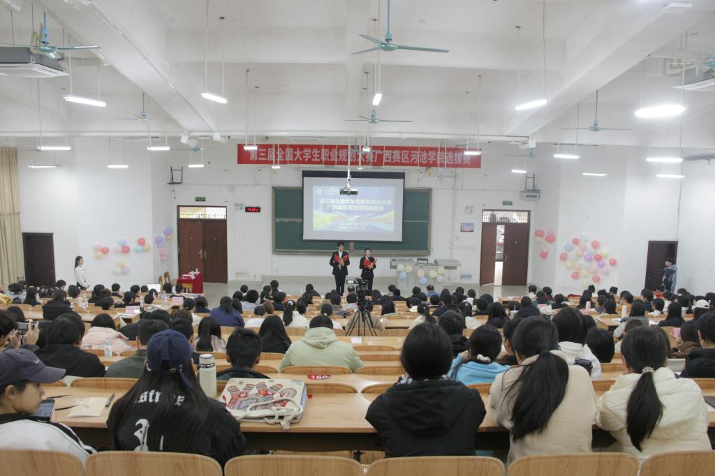 为加强生涯教育和就业指导,增强大学生职业规划意识,12月7日,我校在弘毅楼1-105教室和1-205报告厅举办第三届全国大学生职业规划大赛广西赛区河池学院选拔赛。